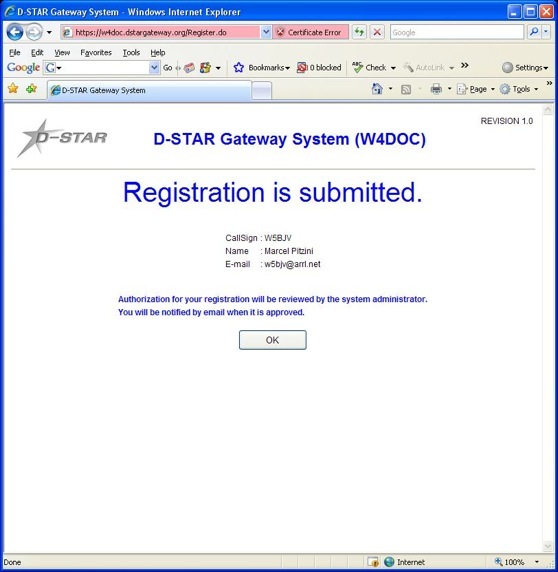 1. ‣11  Click “OK” and your registration is COMPLETE!  You may log out and begin using the D-Star network.